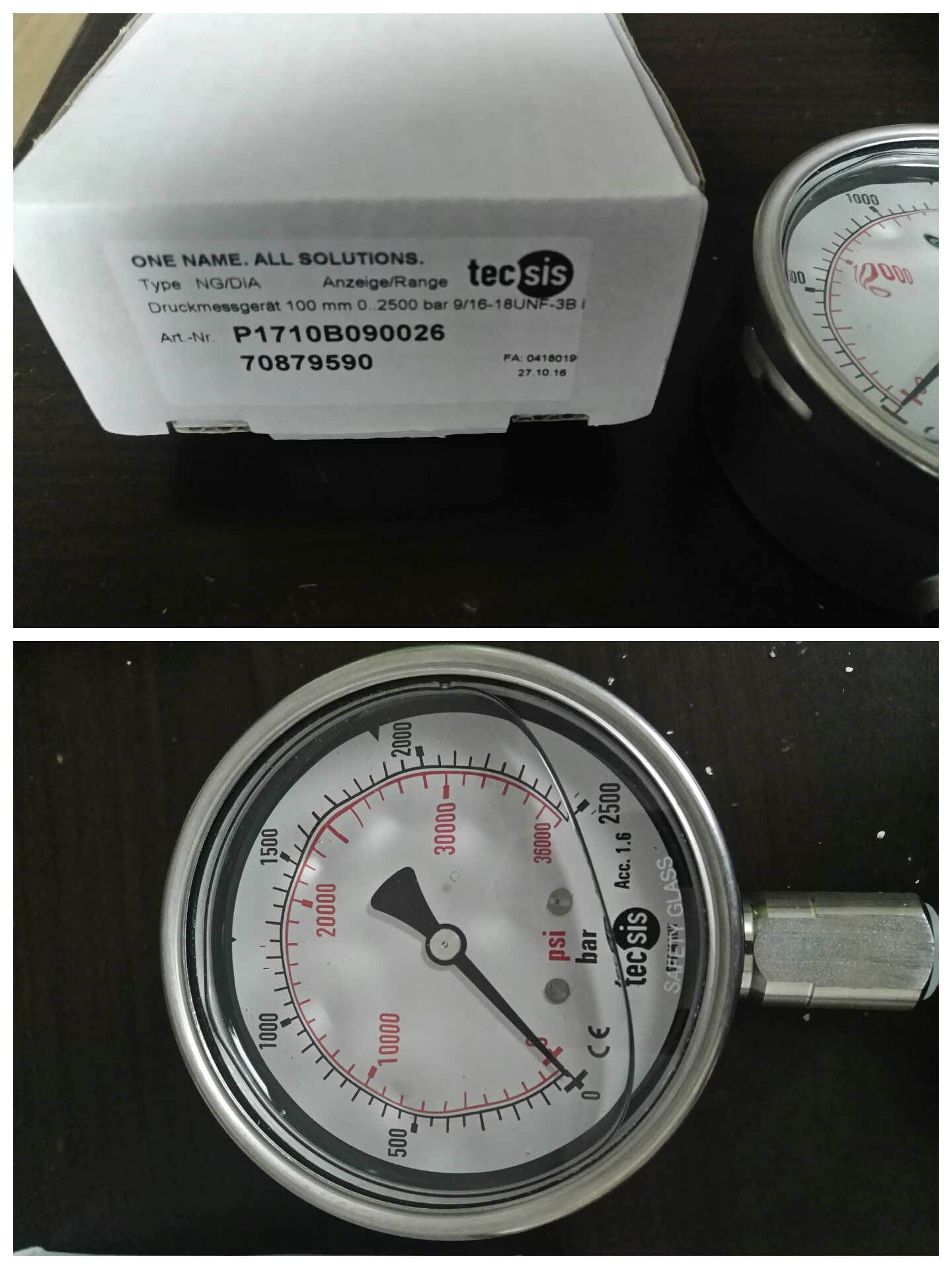 不銹鋼超高壓**壓力表符合 EN 837-1/S3,標(biāo)準(zhǔn)尺寸表徑100,帶或不帶接點(diǎn),接口位置底部徑向。